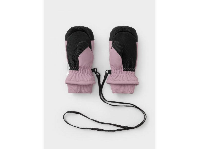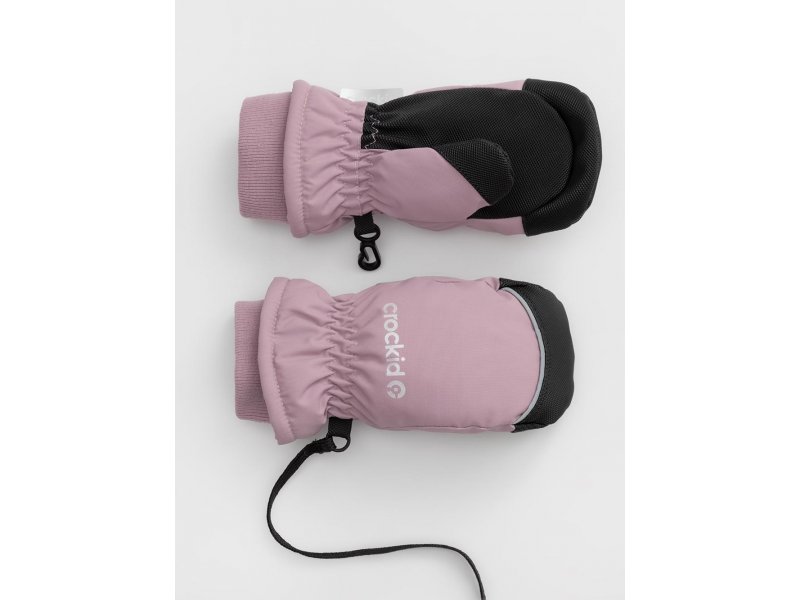 Утеплённые детские рукавицы из мембранной ткани со вставками из искусственной кожи. Эластичная внутренняя манжета из мягкого материала плотно прилегает к запястью и надёжно защищает руки от ветра и снега. Внутри подклад из флиса. Пластиковый карабин и шнур скрепляют рукавицы между собой. Светоотражающие элементы служат для дополнительной безопасности в тёмное время суток. Состав: верх: 80% нейлон, 20% полиуретан; подклад: 100% полиэстер; Утеплитель: 100% полиэстер