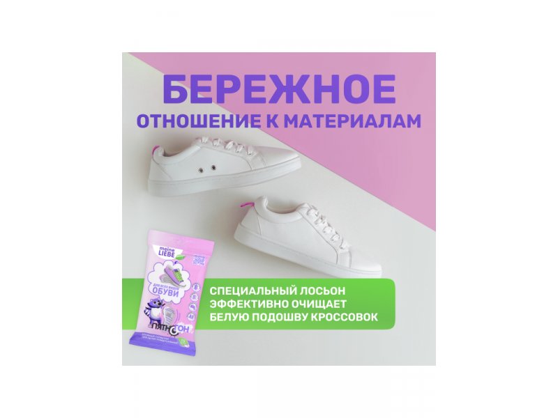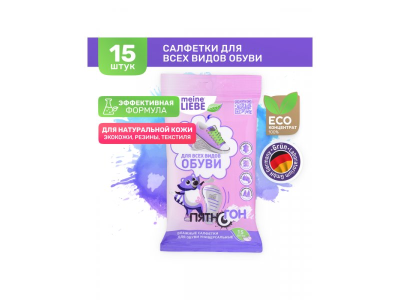 Универсальные салфетки влажные Meine Liebe для обуви, 15 шт. Наилучший результат получается, если удается обработать салфеткой свежее загрязнение. Специальный лосьон на основе комплекса ПАВо-в позволит быстро и эффективно вернуть белизну подошве любимых кроссовок, удалит загрязнения с кожи, обеспечит уход Вашей обуви, любимой сумке, кошельку/портмоне, перчаткам.