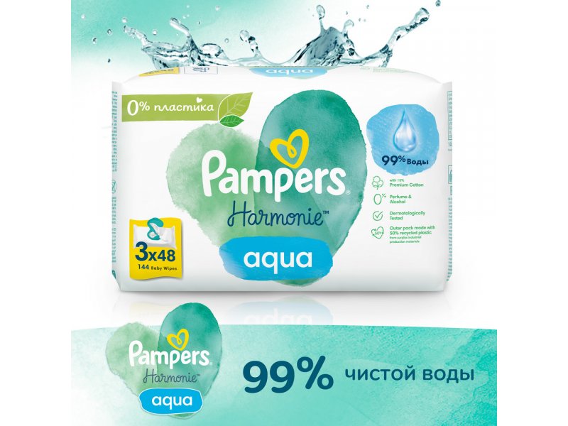 Салфетки влажные Pampers Harmonie Aqua 144 шт
