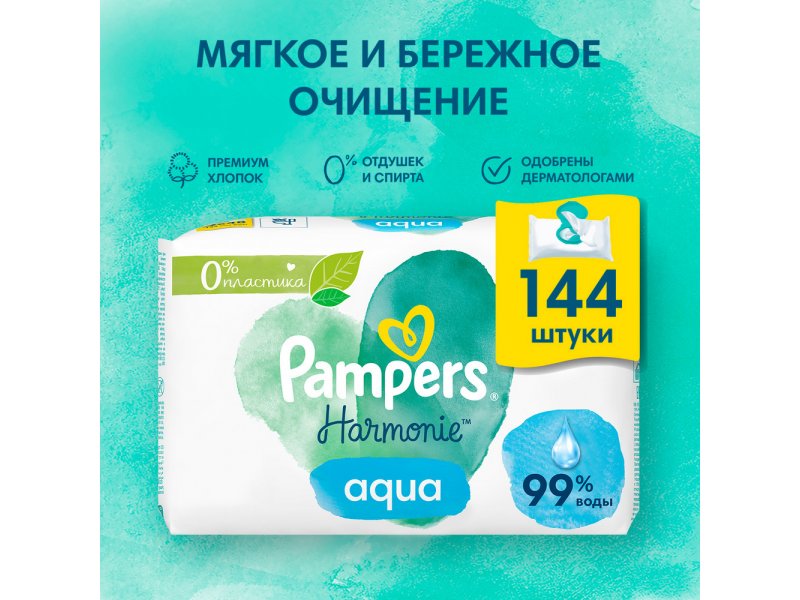 Салфетки влажные Pampers Harmonie Aqua 144 шт 1-00466613