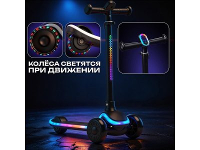 Самокат Rocket 3-х колесный с подсветкой колес
