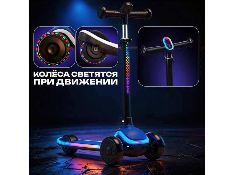Самокат Rocket 3-х колесный с подсветкой колес