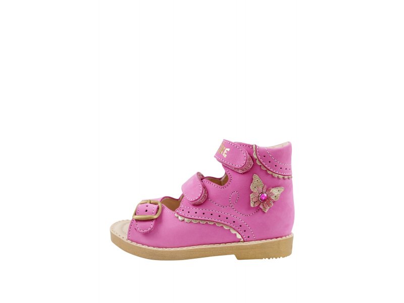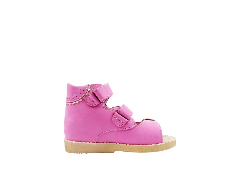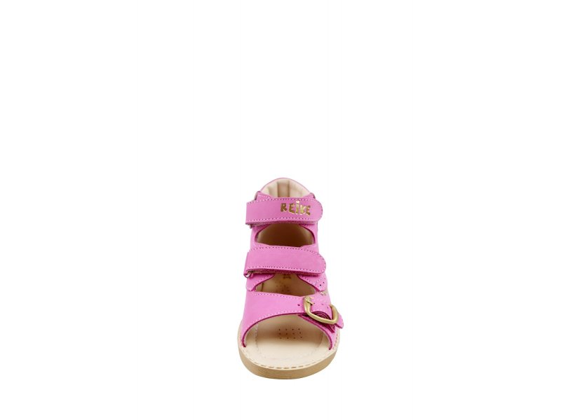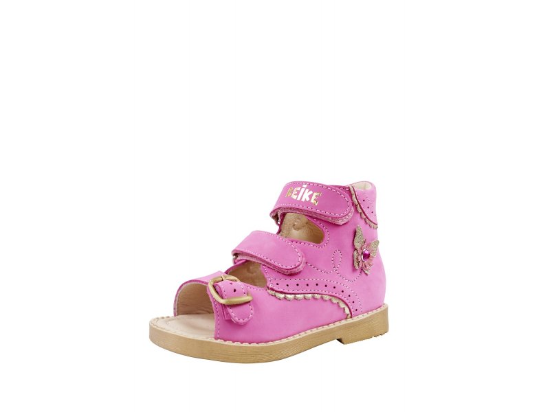 Сандалии для девочки Reike с открытым мысом выполнены из высококачественной натуральной кожи розового цвета (фуксия). Жёсткий задник с мягким кантом в пяточной части, анатомическая стелька с геленочным супинатором, подошва с каблуком "Томаса" надёжно удерживают голеностопные суставы ребёнка в правильном положении и не создают дискомфорта при ходьбе и беге. Полнота ноги удобно и быстро регулируется ремешками на прочных "липучках". Модель декорирована деталями из кожи, хольнитенами, декоративными строчками.