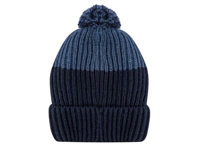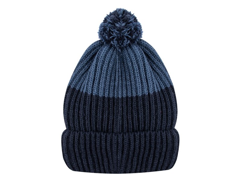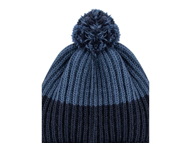 Шапка детская, полосатая, c отворотом, с помпоном.