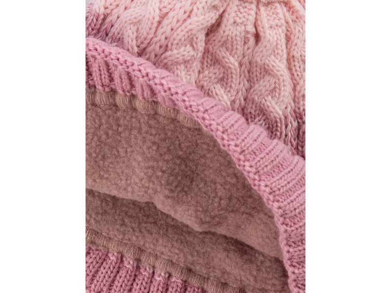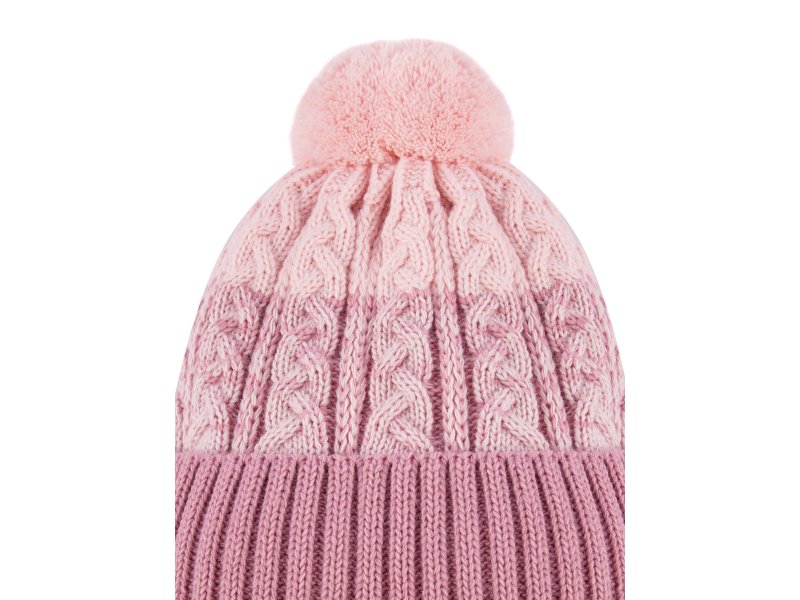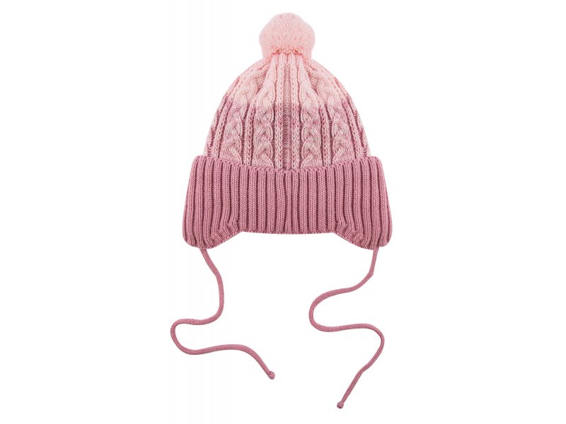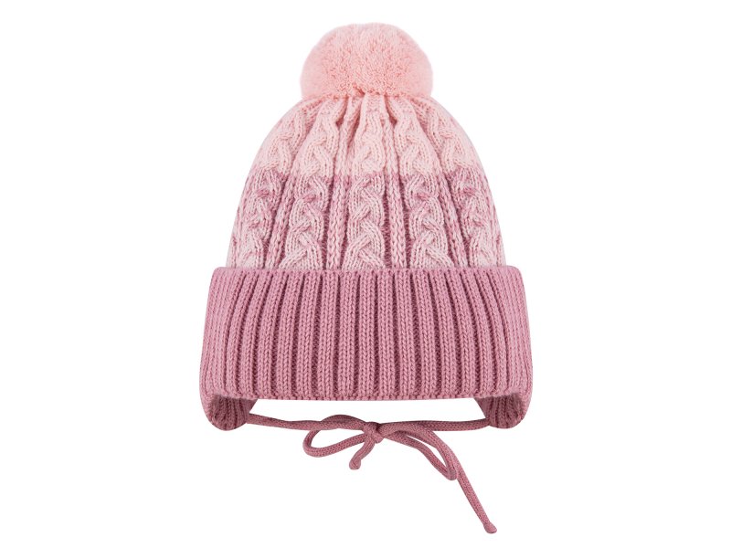 Шапка детская, полосатая, c отворотом, с помпоном.