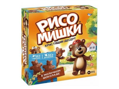 Состав: рисовая мука, сахар, кукурузная мука, какао-порошок, глюкозно-фруктозный сироп, соль, масло растительное, какао масло, какао тертое, эмульгатор: лецитины соевые. Может содержать следы молочных продуктов, арахиса, орехов фундука, диоксида серы.