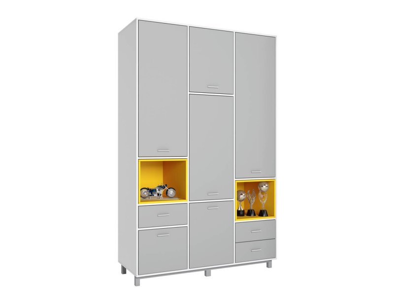 Многофункциональный шкаф коллекции Мирум. Имеет большое колличество полок. В основании 4 вместительных ящика на метабоксах. Оборудован системой плавного закрытия дверей. Оригинальный дизайн. Модель изготовлена из ЛДСП Kronospan (Австрия), отвечающего европейским требованиям.