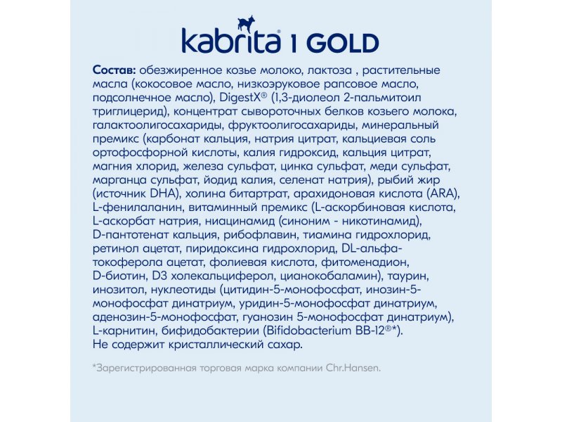 Смесь молочная Kabrita 1 Gold на козьем молоке для комфортного пищеварения, с 0 месяцев, 800 г