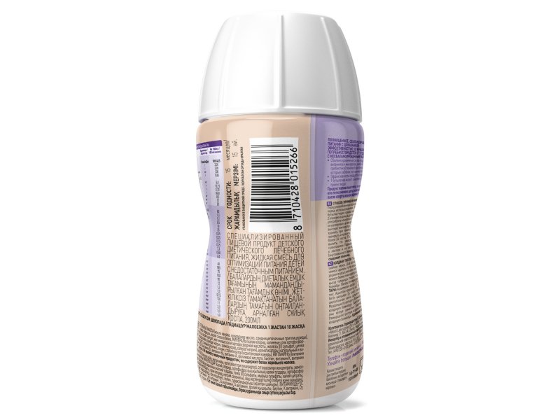 Состав: вода, мальтодекстрин, сахароза, РАСТИТЕЛЬНЫЕ МАСЛА (масло канола, кукурузное масло, среднецепочечные триглицериды), концентрат молочного белка, фруктоолигосахариды (ФОС), какао-порошок, изолят соевого белка, МИНЕРАЛЫ (калия хлорид, калиевые соли ортофосфорной кислоты, кальциевые соли ортофосфорной кислоты, натрия цитрат, магниевые соли ортофосфорной кислоты, железа (II) сульфат, цинка сульфат, калия цитрат, марганца сульфат, меди сульфат, йодид калия, молибдат натрия, хрома хлорид, селенат натрия), ароматизаторы (натуральный и ванилин), эмульгаторы (моно- и диглицериды жирных кислот, соевый лецитин), холин, стабилизатор (ксантановая камедь), ВИТАМИНЫ (витамин С , ниацин, витамин Е , пантотеновая кислота , витамин В1 , витамин В2 , витамин В6 , витамин А , фолиевая кислота, биотин , витамин К , витамин D3 , витамин В12 ), (DHA) из масла C.cohnii, инозит, таурин.Особенности продукта: