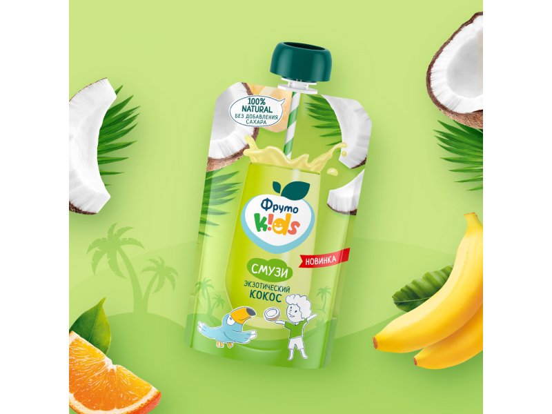 Смузи ФрутоKids банан, яблоко, апельсин, кокос, 130 г