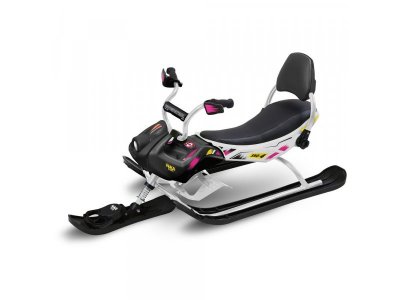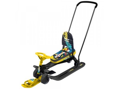 Материалы: сварная конструкция из стальных труб, пластмассовые лыжи, мягкое сиденье из ПВХ и поролона.