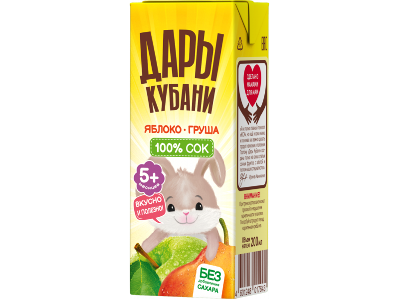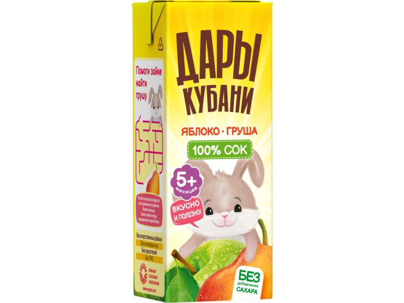 Сок Дары Кубани яблочно-грушевый восстановленный осветленный 200 мл