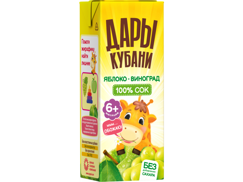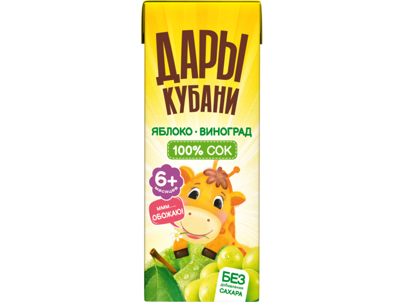 Сок Дары Кубани яблочно-виноградный восстановленный осветленный 200 мл