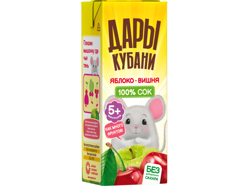 100% сок. Изготовлен из яблочного и вишневого сока без добавления сахара.