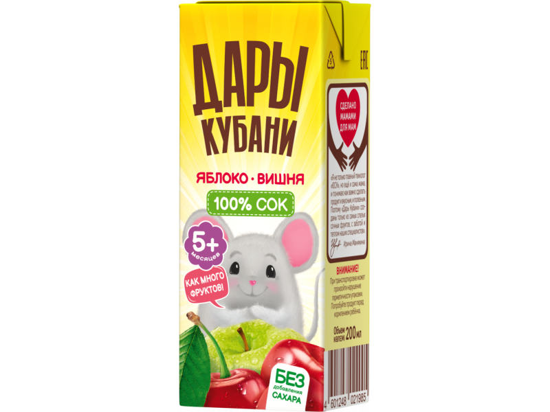 Сок Дары Кубани яблочно-вишневый восстановленный осветленный 200 мл