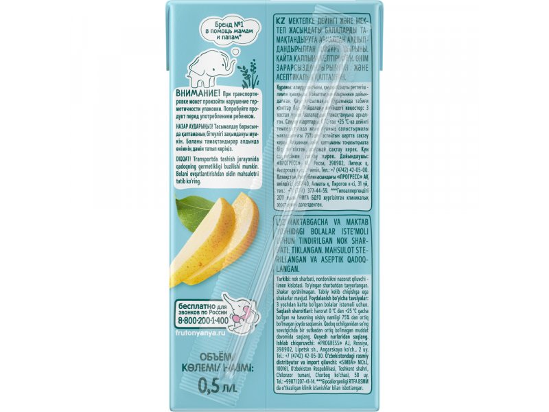 Сок ФрутоНяня Груша осветленный 500 мл