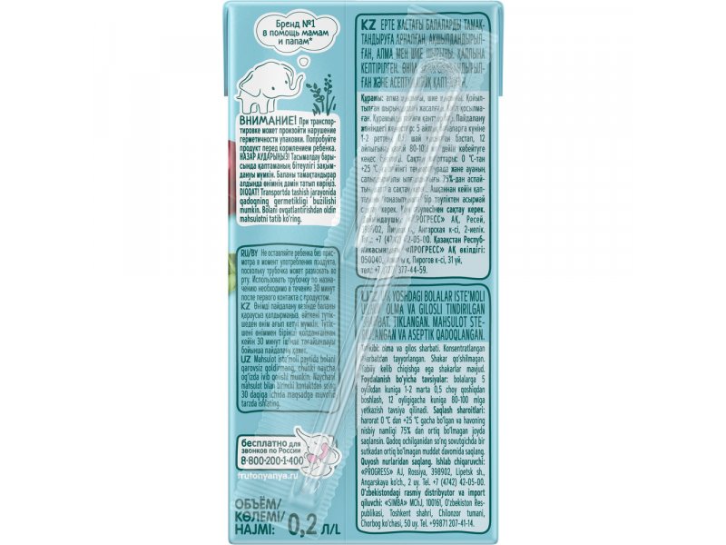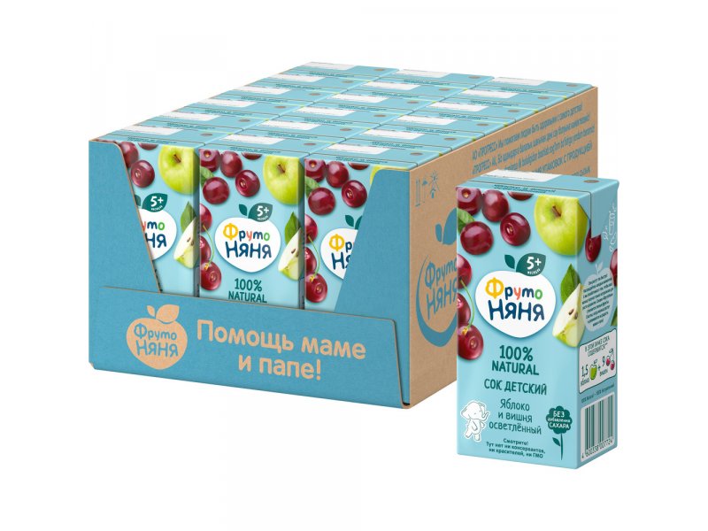 Сок ФрутоНяня Яблоко, вишня осветленный, 200 мл