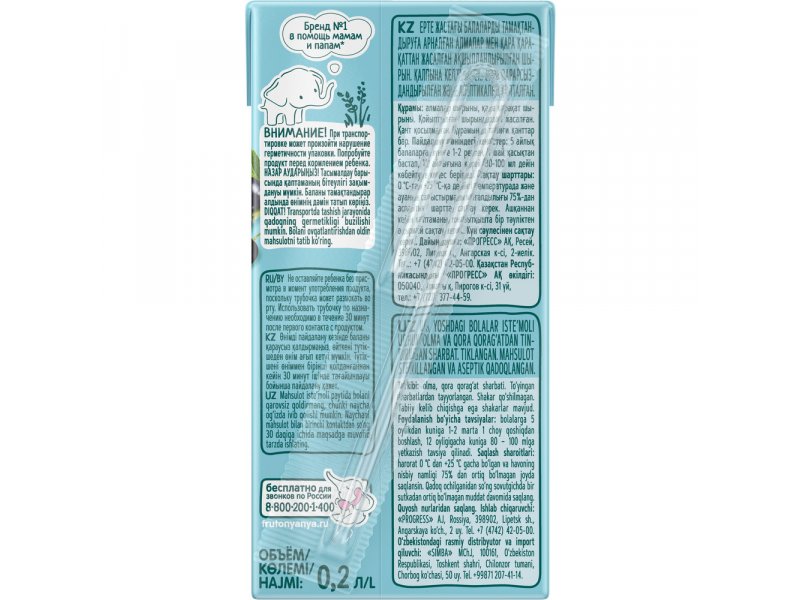 Сок ФрутоНяня Яблоко и черная смородина осветленный 200 мл