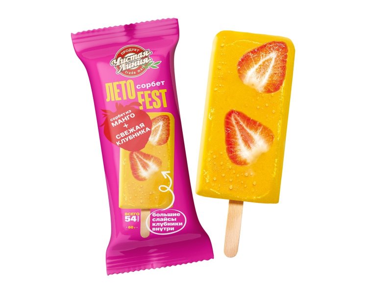 Сорбет ЛЕТОFEST на палочке с дольками спелой клубники и пюре экзотического манго – настоящий райский десерт, который позволит вам насладиться моментом и создать незабываемые впечатления.