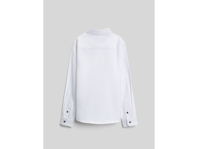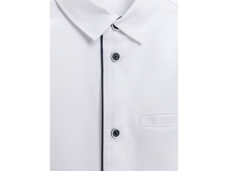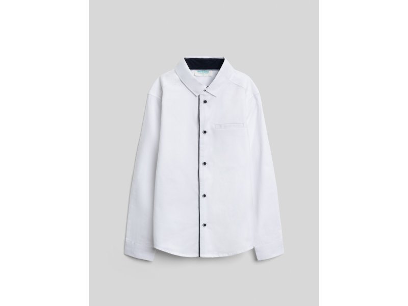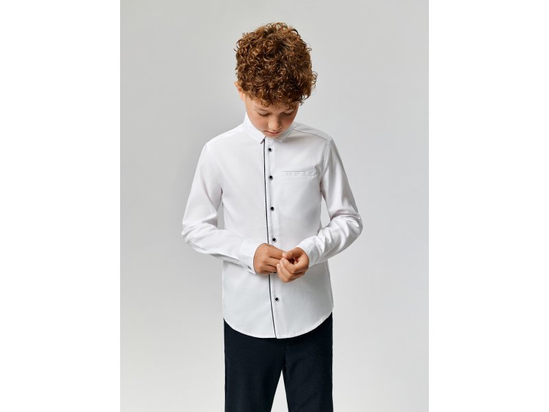 Белая Сорочка Acoola с контрастной отделкой для мальчика выполнена из мягкой и дышащей хлопковой ткани, обеспечивающей комфортное ношение. Спереди расположена центральная застежка на контрастные пуговицы; планка с контрастной отделкой, придающей выразительный акцент. На спинке расположена силуэтообразующая кокетка. Длинные рукава с манжетами на пуговицах делают модель всесезонной и подходящей для прохладной погоды. Рубашечный воротник с контрастной стойкой придает изделию завершенный строгий вид. Спереди рубашку дополняет функциональный прорезной карман. Стильная модель станет отличной базой для школьной формы.