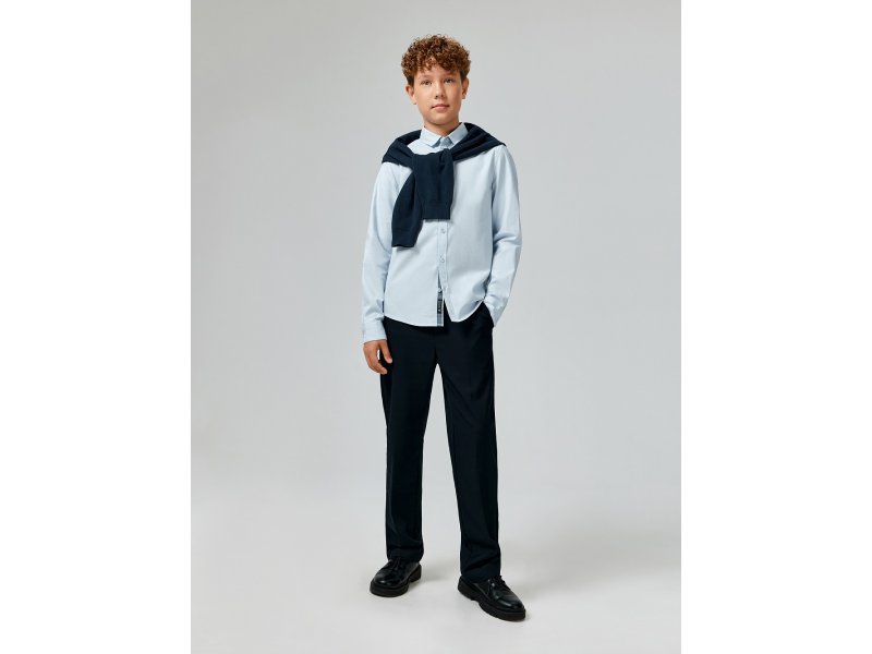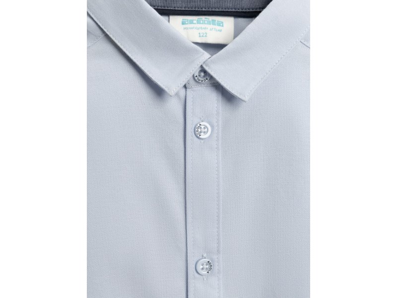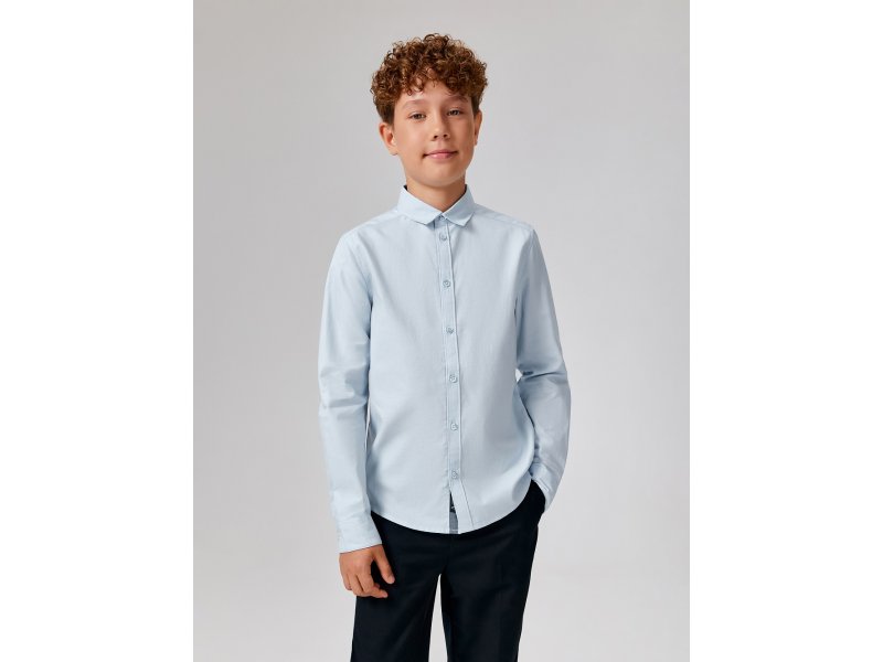 Детская рубашка с длинным рукавом для мальчика выполнена из хлопковой ткани, что создает приятные ощущения на коже во время ношения. Модель прямого силуэта обеспечивает комфортную посадку по фигуре. Застежка на петли и брендированные пуговицы помогает при одевании; центральная планка с контрастной отделкой. Рубашка с длинным рукавом подходит для ношения в любую погоду. На спинке расположена силуэтообразующая кокетка. Стояче-отложной воротник с контрастной вставкой придает изделию завершенный и строгий вид. Модель представлена в двух цветах: белом и голубом. Рубашка может стать базой для школьной формы. Комбинируйте модель с брюками, Жилет Acoolaкой и галстуком, чтобы создать более строгий аутфит для учебных будней. Состав: хлопок 100%. Уход за изделием: Не отбеливать; Утюжить с изнаночной стороны; Деликатная стирка в холодной воде до 30C; Не использовать химчистку; Не использовать машинную сушку; Стирать с изделиями схожих цветов; Утюжить паром с изнаночной стороны; Вывернуть на изнаночную сторону перед стиркой