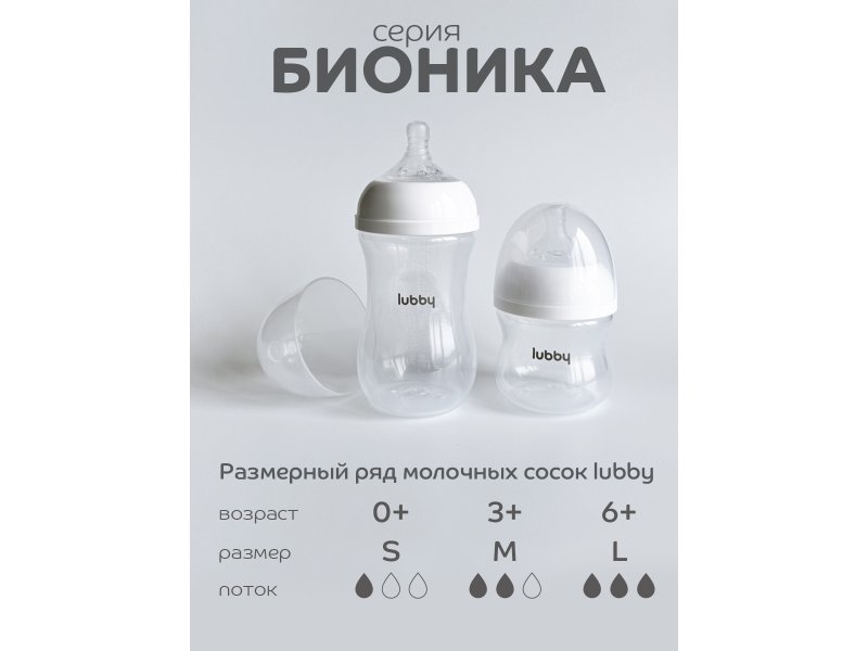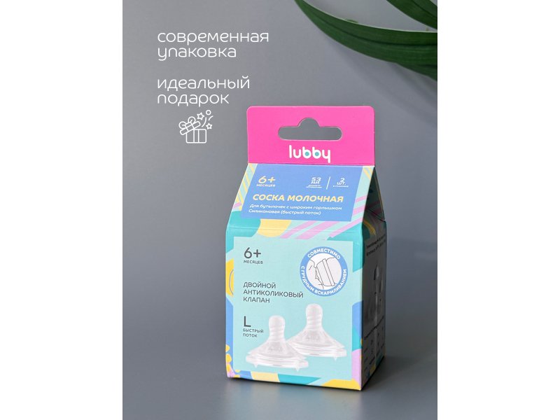 Соска Lubby Бионика молочная, силиконовая, быстр. поток, с 6+ мес., 2 шт.