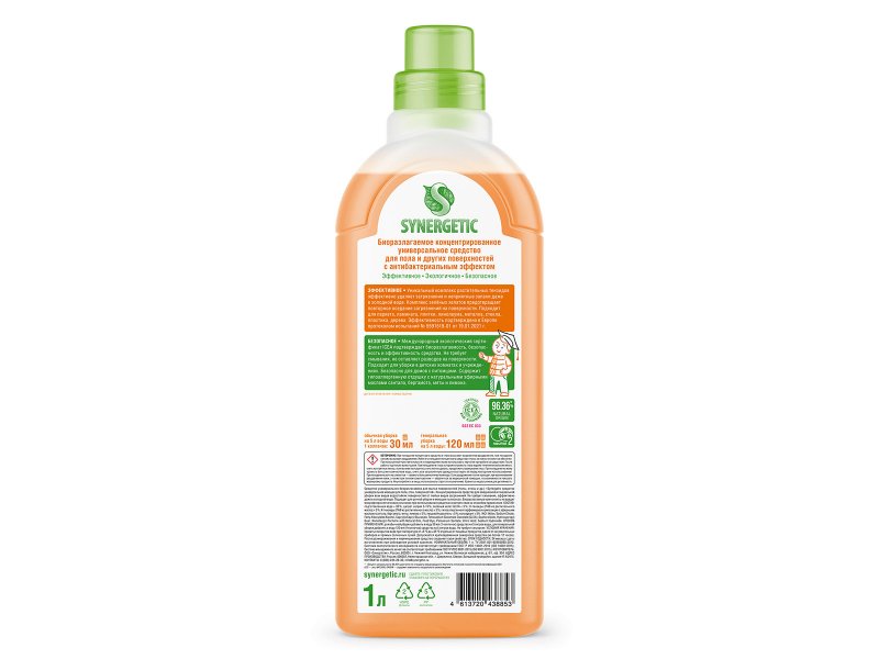 Средство Synergetic универсальное для мытья поверхностей (для пола), 1 л