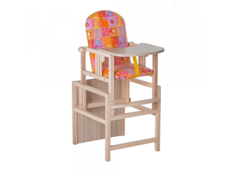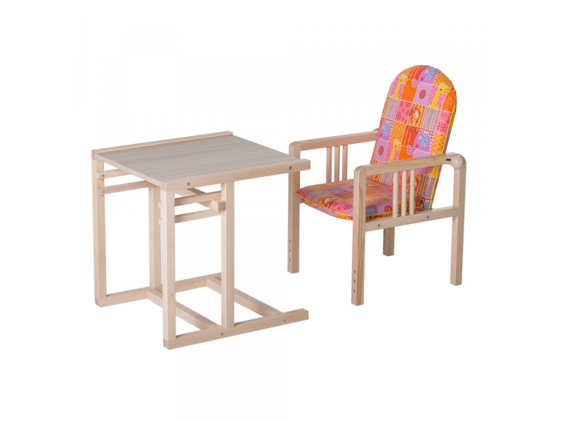 Стул-трансформер для кормления Гном New выполнен из массива березы с возможностью трансформирования в набор стол + стул. Столик оснащен толстой ламинированной столешницей. Она регулируется в 2-х положениях, в зависимости от стадии роста ребёнка (для этого на стуле имеются 2 комплекта резьбовых втулок).