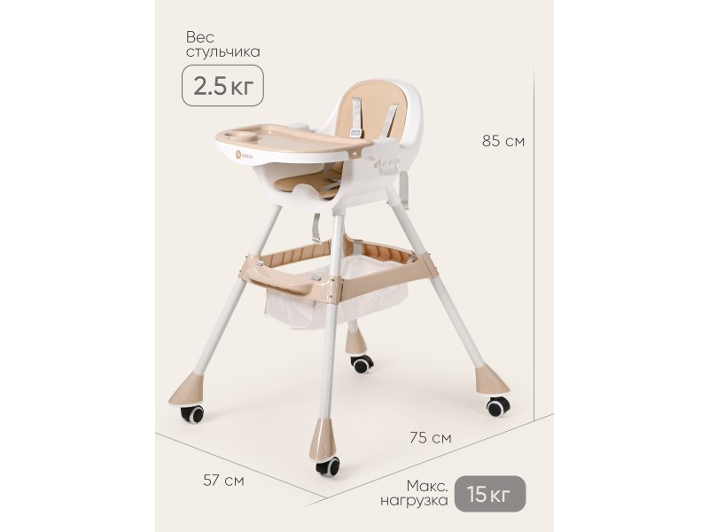 3) Практичность – регулируемый столик, съемный поднос для кормления, удобная конструкция позволяет придвинуть стульчик вплотную к столу, корзина для хранения мелочей;