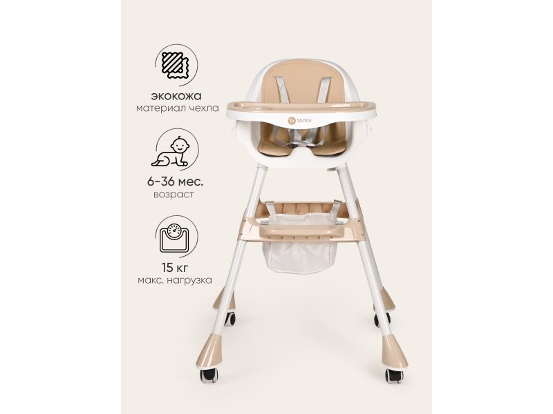 Стульчик для кормления Tomix Meal – безопасный и удобный детский стул для малышей от 6 месяцев до 3 лет.