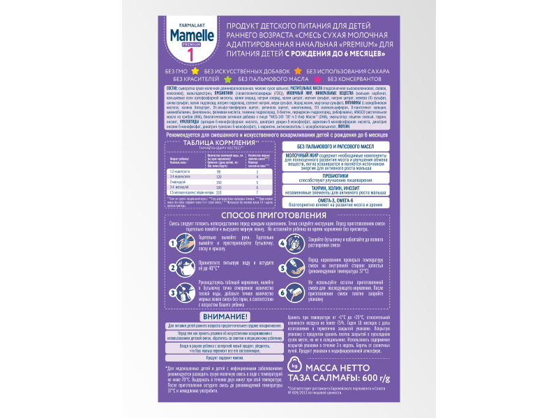 Сухая молочная смесь Mamelle Premium 1, 0-6 мес., 600гр