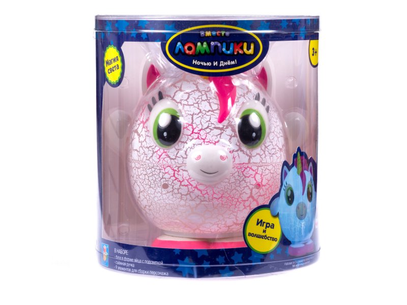 Многофункциональный светильник представляет собой базу в форме яйца с подсветкой. Внутри нее хранятся элементы для сборки персонажа и съёмная ручка, благодаря которой Лампика везде можно брать собой. Яркий персонаж "Единорог" принесёт немного магии и волшебства в ваш дом.