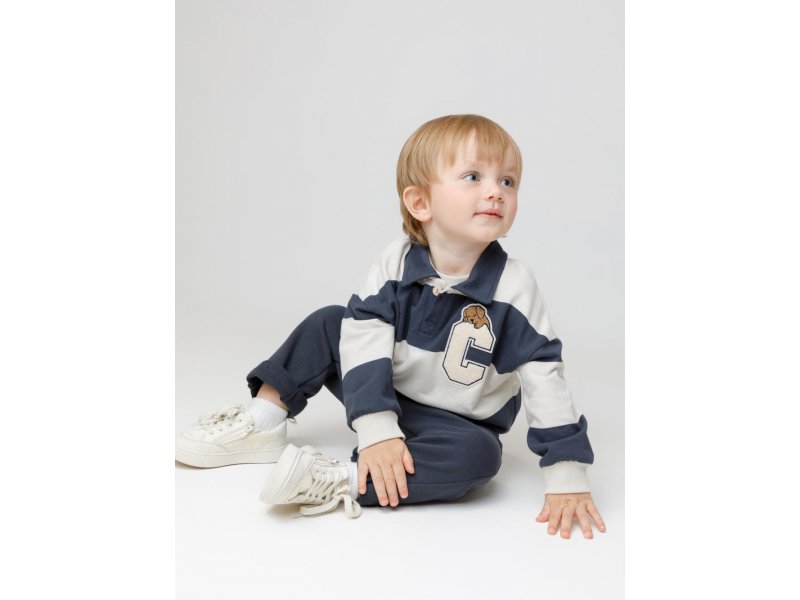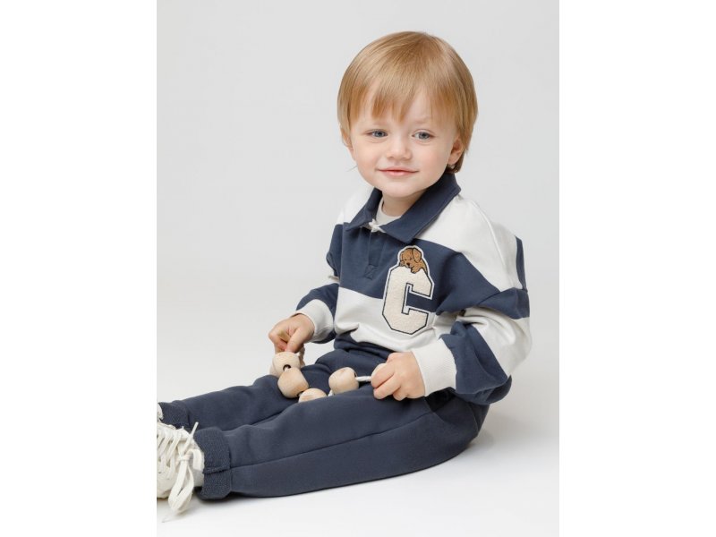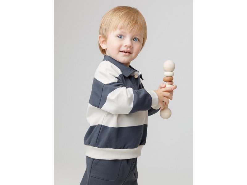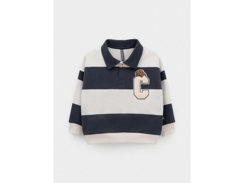 Свитшот с воротником для мальчика. Изготовлен из высококачественного петельчатого футера. Манжеты и пояс выполнены из эластичного полотна. На груди застёжка на пуговицу. Изделие сохраняет цвет и форму после многократных стирок.
