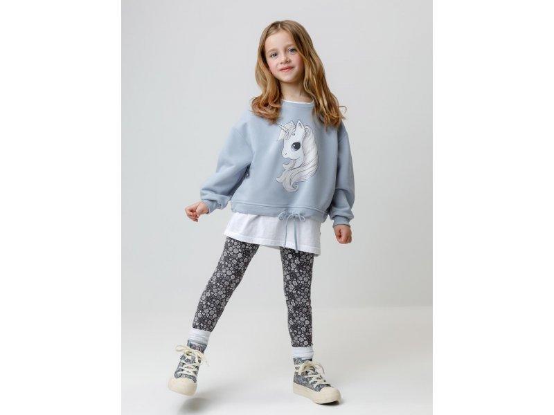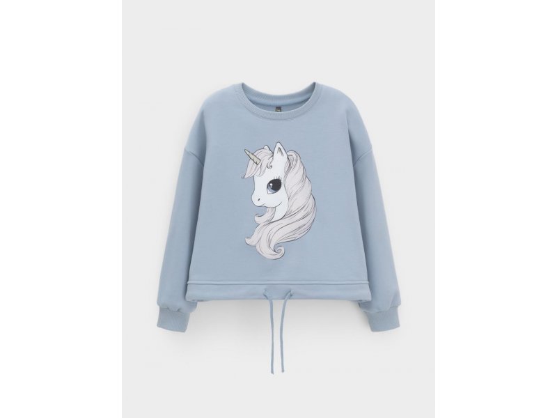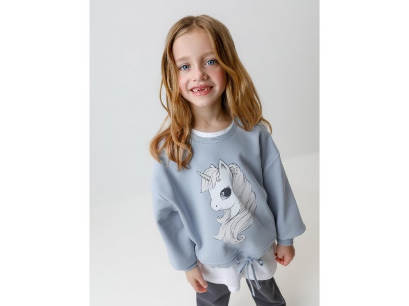 Свитшот для девочки из мягкого петельчатого футера трёхнитки. В составе 80% натурального хлопка и 20% полиэстера, при этом полиэстер ввязан внутрь по особой технологии и не соприкасается с кожей. Застёгивается на кнопки в размерах 92 и 98. Пояс регулируется по ширине с помощью шнурка. На рукавах эластичные манжеты. Оригинальный принт выполнен из стойких текстильных гипоаллергенных красителей. Изделие сохраняет цвет и форму после многократных стирок. Все трикотажные полотна производятся в соответствии с нормами швейцарского сертификата ЭкоТекс.