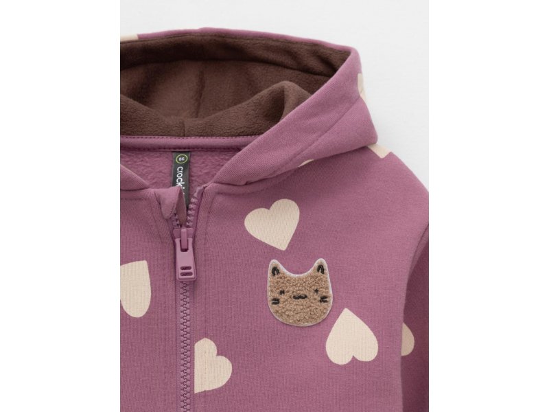 Тёплая толстовка для девочки со спущенными плечами. Изготовлена из высококачественного футера с начёсом. Застёгивается на молнию. В капюшоне мягкий подклад из флиса с длинным ворсом. Манжеты и пояс выполнены из эластичного полотна. Спереди удобный вместительный карман-кенгуру. Изделие сохраняет цвет и форму после многократных стирок. Все трикотажные полотна производятся в соответствии с нормами швейцарского сертификата ЭкоТекс.