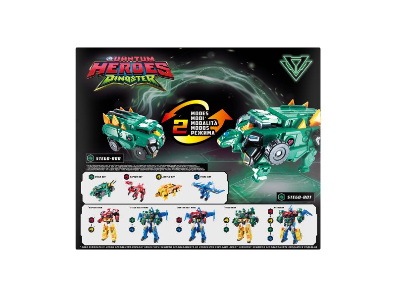 Дино-бот Трансформер 4-в-1 Стего Гардиан состоит из Стего-бота и аксессуара. Дино-бот может трансофрмироваться в Дино-трак. У трансформера два режима игры — играйте Дино-ботом и пересоберите в Дино-трак.