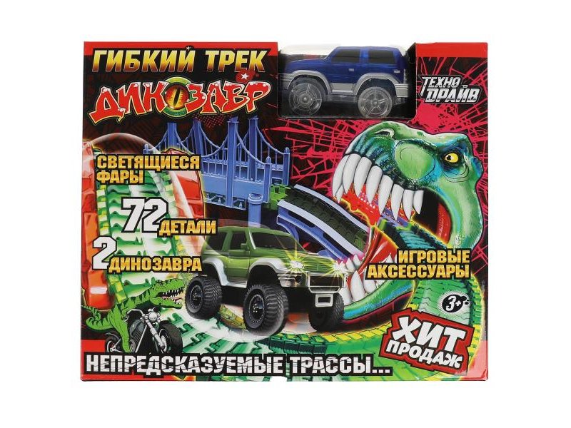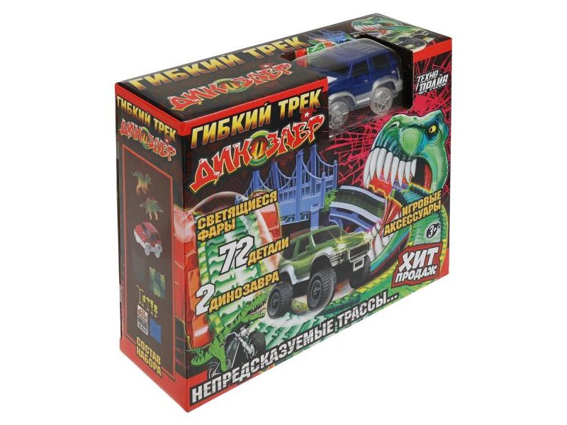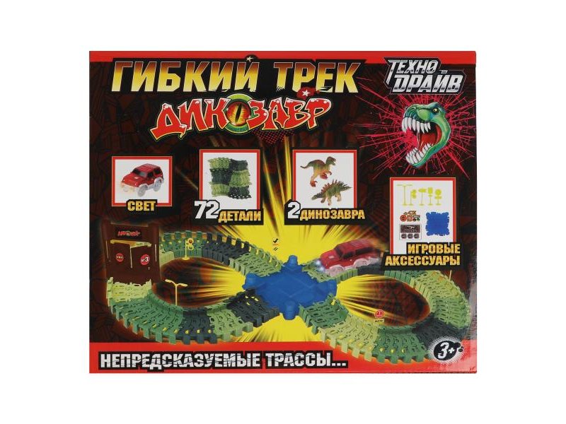 Трек гибкий динозавр свет, на бат.кор.28*23,5*9см ТЕХНОДРАЙВ в кор.2*24шт