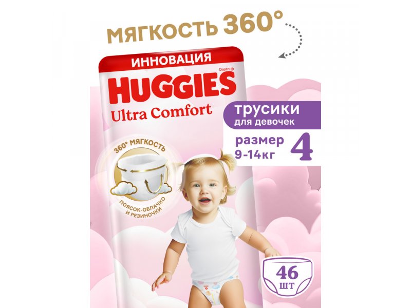 Трусики-подгузники Huggies Ultra Comfort для девочек 4 9-14 кг, 46 шт 1-00462280