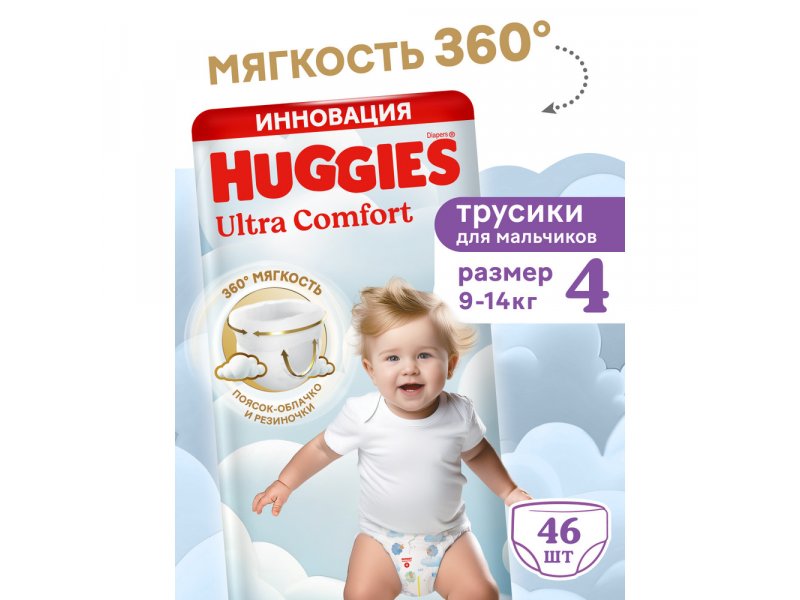 Трусики-подгузники Huggies Ultra Comfort для мальчиков 4 9-14 кг, 46 шт