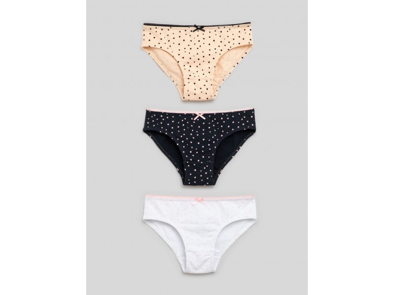 Комплект из 3-х детских трусов в горошек для девочки выполнен из мягкого хлопка, что обеспечивает комфортное ношение в течение дня. Линия талии обработана небольшими аккуратными фестонами, которые добавляют модели очаровательный штрих. Изделия декорированы стильным принтом в горошек, что придает им оригинальный и интересный вид. Спереди расположен аккуратный бантик для дополнительного акцента. Ластовица изготовлена из 100%-ного хлопка, который создает приятные ощущения на коже. В комплекте представлены три цвета: темно-синий, белый и бежевый. Набор подойдет для тех, кто ценит стиль и комфорт в повседневном ношении.