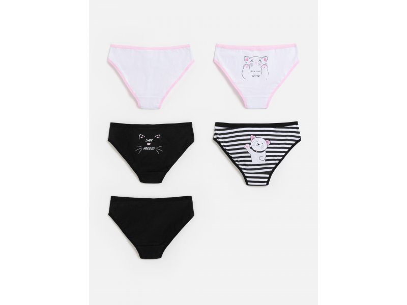 Набор из 5-ти детских трусов-брифов для девочки изготовлен из мягкого хлопкового трикотажа, который обеспечивает комфорт и хорошую воздухопроницаемость. Модель с классической посадкой отлично подходит для повседневной носки. Ластовица выполнена из 100%-ного хлопка, что гарантирует дополнительный комфорт и заботу о коже.