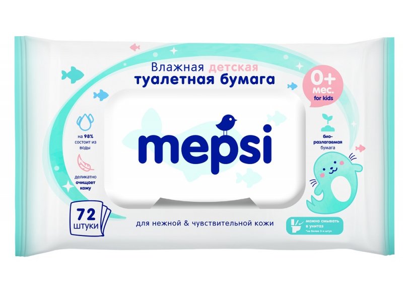 Туалетная бумага Mepsi влажная для детей, 72 шт.