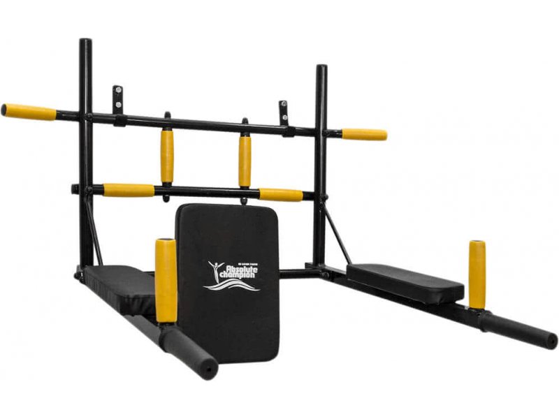 Турник-бруcья Absolute Champion Железное тело способствует развитию мышц верхней части тела, укрепляет связки и сухожилия, растягивает и выравнивает позвоночник, улучшая осанку и избавляя от болей в пояснице. Турник изготовлен из сборной стальной конструкции, что позволяет ему выдерживать нагрузку до 150 кг. В производстве применяется порошковый метод покраски.