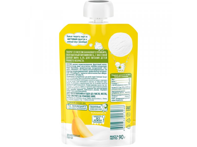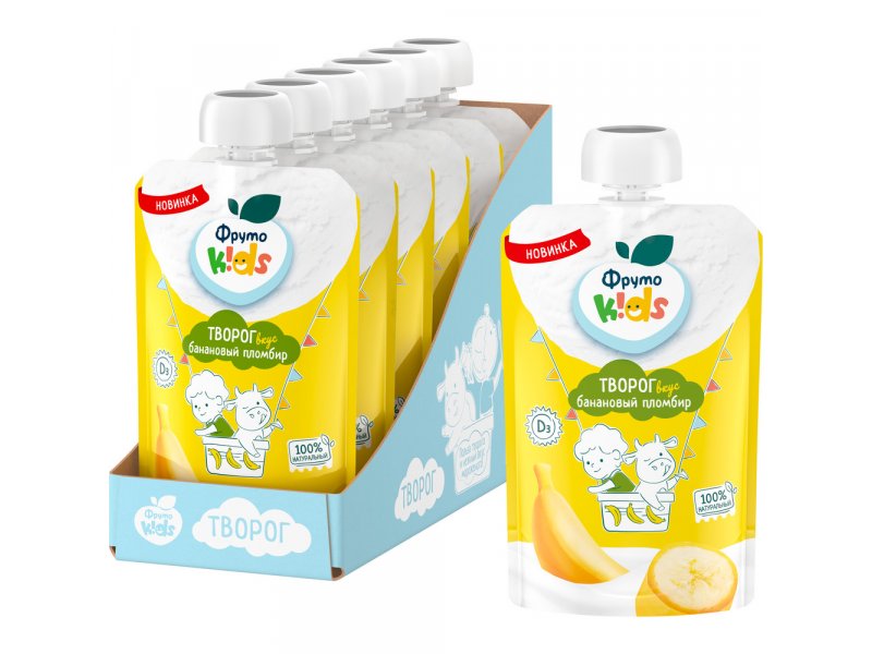Творог ФрутоKids Банановый пломбир 4,2%, 90 г пауч