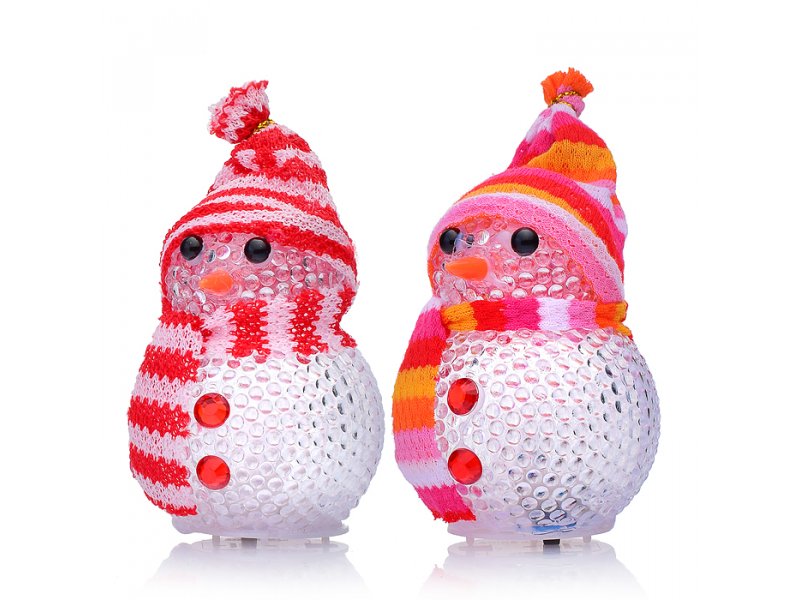 Украшение новогоднее Снеговичок Снеговик светящийся в полосатой шапке и шарфе