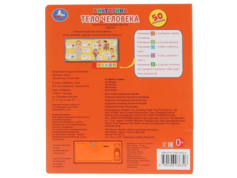 "Умка". Тело человека. Викторина (5 звук. кнопок). Формат: 200х175мм, 10 карт. стр. в кор.32шт