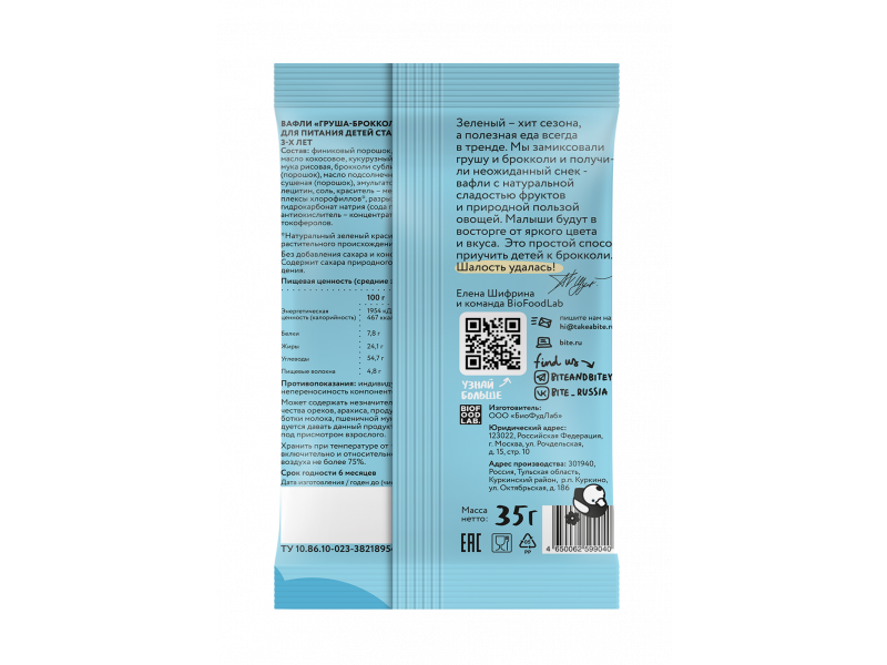 Вафли Take a Bitey Груша-Брокколи, 35 г