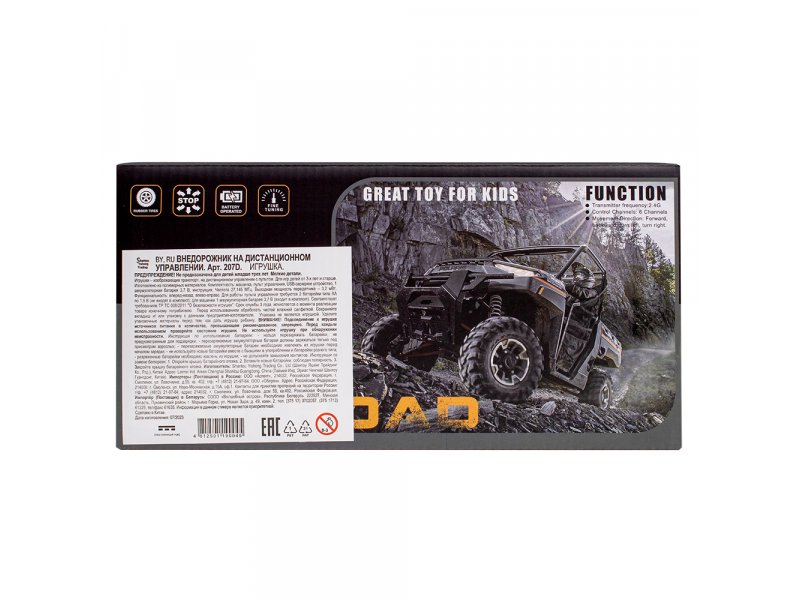 В набор входит: машинка, пульт управления, USB-зарядное устройство, 1 аккумуляторная батарея 3,7 В.