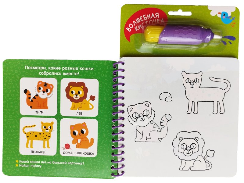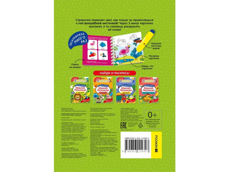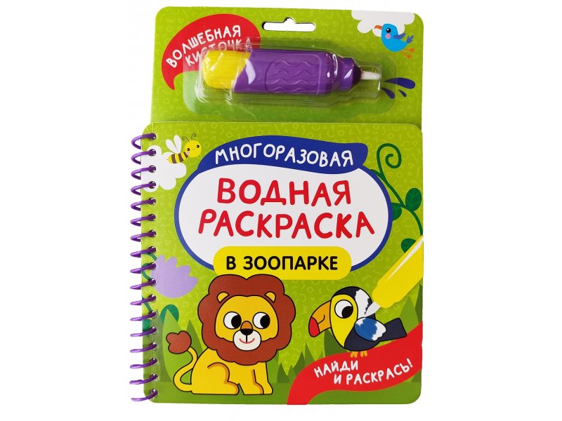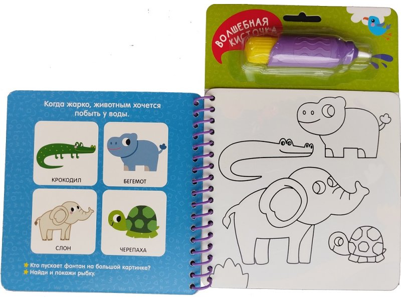 Серия Многоразовые водные раскраски. Найди и раскрась — настоящие книжки-игрушки, которые точно увлекут ребенка. Отвечайте на интересные вопросы, раскрашивайте картинку волшебным водным маркером и ищите на ней спрятанные машинки, животных и персонажей любимых сказок.