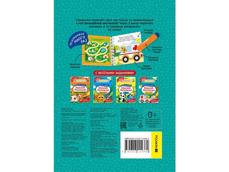 Водная раскраска Росмэн С весёлыми заданиями Транспорт
